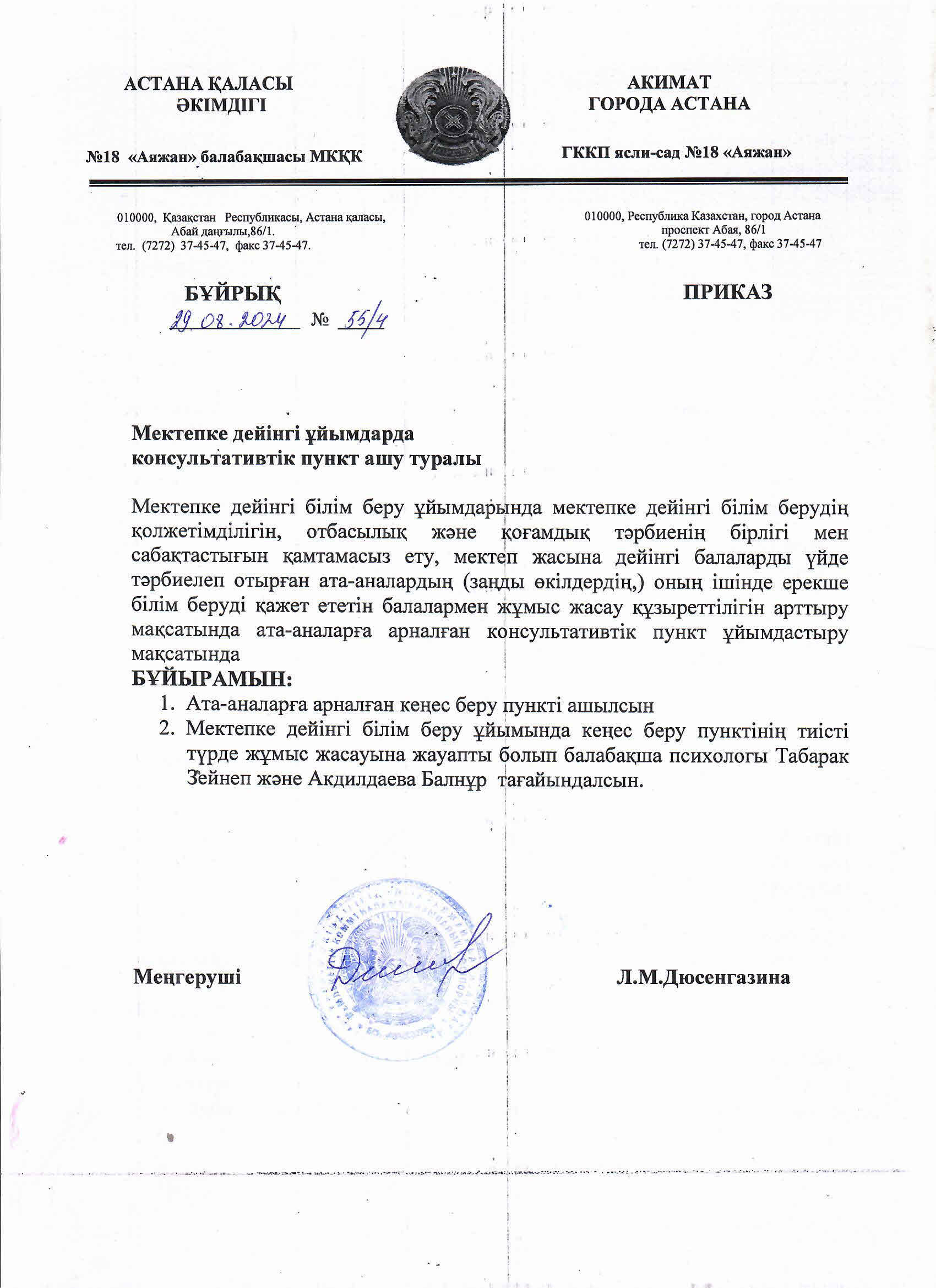 Астана қаласы әкімдігінің "№ 18 "Аяжан" балабақшасы" МКҚК